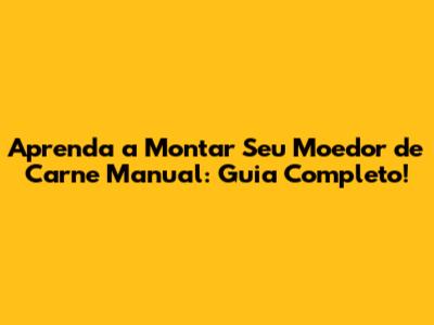 Aprenda A Montar Seu Moedor De Carne Manual: Guia Completo!