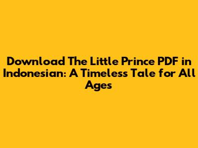 Finding Your 'The Little Prince' PDF Indonesia: Easy Steps