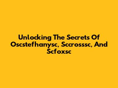 Unlocking The Secrets Of Oscstefhanysc, Sccrosssc, And Scfoxsc