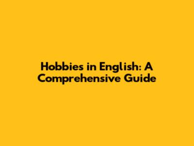 Hobbies In English: A Comprehensive Guide
