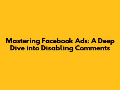 Alright, let's get down to business, guys! You've decided you want to turn off comments on your Facebook Ads, and you need to know exactly how to do it. It's actually pretty straightforward, but it's done within the Ads Manager, not directly on the post itself once it's live as an ad. So, first things first, you need to navigate to your Facebook Ads Manager. If you haven't used it before, it's where all the magic (and the spending) happens for your ad campaigns. Once you're in Ads Manager, you'll want to find the specific ad campaign you want to manage. You can filter by campaign name, ad set, or ad level. For this specific setting, you'll typically be looking at the ad level. Navigate to the Ad tab or the specific ad you want to edit. Now, here's the crucial part: you'll be editing the ad creative. Scroll down until you find the section related to 'Post' or 'Creative'. You might see a preview of your ad here. Look for an option that says something like 'Use Existing Post' or 'Create New Ad'. If you're using an existing post, you'll need to edit that post. If you're creating a new ad, you'll be in the creative setup. The key is to find the 'Comments' setting. This is usually located within the 'Options' or 'Advanced Options' of the ad creative setup. It might be under a section specifically for 'Post Comments' or 'Social Interactions'. You're looking for a toggle or a checkbox that allows you to 'Allow comments' or 'Turn off comments'. Simply uncheck the box or toggle the switch to the 'off' position. Important Note: If your ad is boosting an existing Facebook post, the process is slightly different. You'll need to go to the original Facebook post itself (not through Ads Manager directly for this edit). On the original post, you'll see three dots (...) in the top right corner. Click on those dots, and you should see an option to 'Turn off comments' or 'Manage comments'. If you choose 'Manage comments,' you can often set it to only allow comments from people who have engaged with your Page or post, which is a good middle ground. If you've created a new ad within Ads Manager that isn't tied to an existing post, the setting is usually within the ad's creative editor itself. It's crucial to remember that this setting is managed at the ad level, meaning you need to do it for each individual ad where you want comments disabled. Once you've made the change, make sure to publish or save your ad. And voilà! You've successfully managed to turn off comments on your Facebook Ad. It's all about being in the right section of Ads Manager and looking for those specific post interaction settings. Keep an eye on it, and remember you can always revisit these settings if you change your mind. Pretty neat, huh?