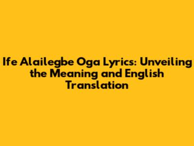 Ife Alailegbe Oga Lyrics: A Deep Dive Into Meaning & Translation