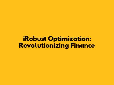 IRobust Optimization: Revolutionizing Finance