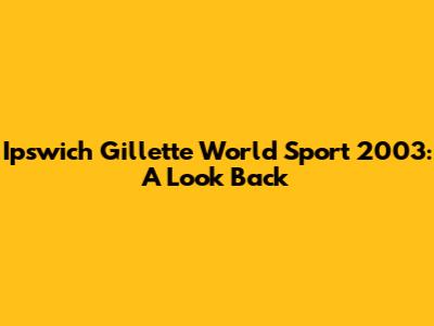 Ipswich Gillette World Sport 2003: A Look Back