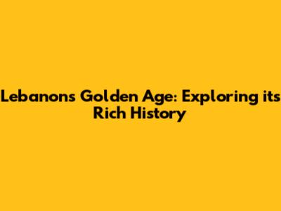 Lebanon's Golden Age: Exploring Its Rich History