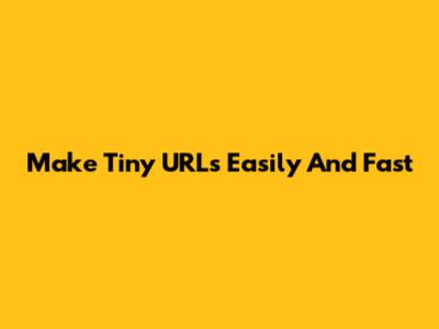 Make Tiny URLs Easily And Fast