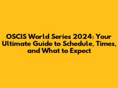 OSCIS World Series 2024: Schedule, Times, And What To Expect