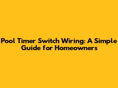 Pool Timer Switch Wiring: A Simple Guide For Homeowners