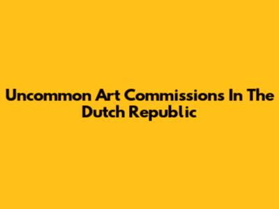 Uncommon Art Commissions In The Dutch Republic