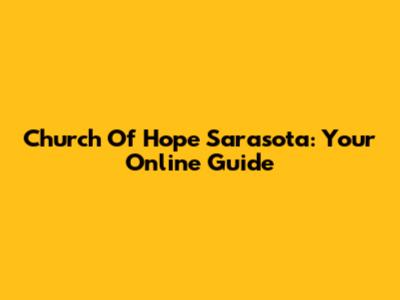 Church Of Hope Sarasota: Your Online Guide