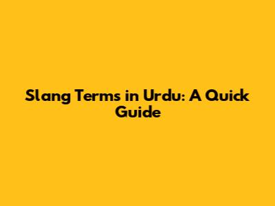 Slang Terms In Urdu: A Quick Guide
