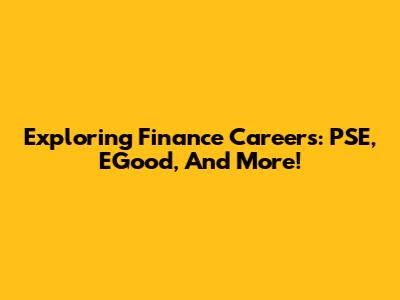 Exploring Finance Careers: PSE, EGood, And More!