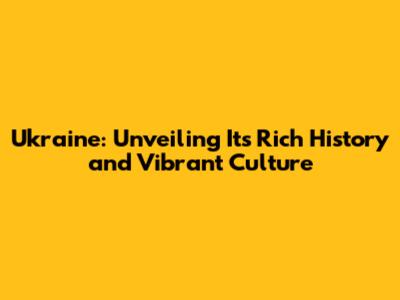 Ukraine: Unveiling Its Rich History And Vibrant Culture