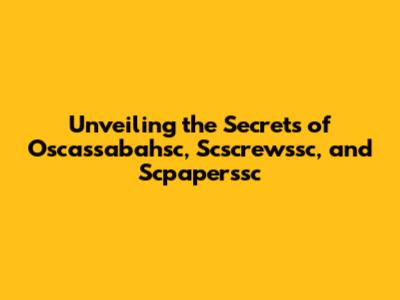 By following these tips, you'll be well on your way to uncovering the secrets behind Oscassabahsc, Scscrewssc, and Scpaperssc.