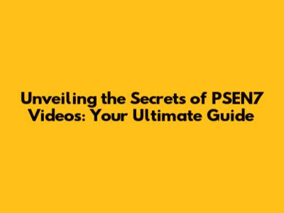 Unveiling The Secrets Of PSEN7 Videos: Your Ultimate Guide