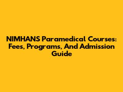 NIMHANS Paramedical Courses: Fees, Programs, And Admission Guide