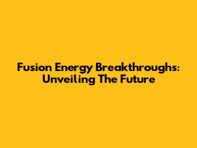 Fusion Energy Breakthroughs: Unveiling The Future