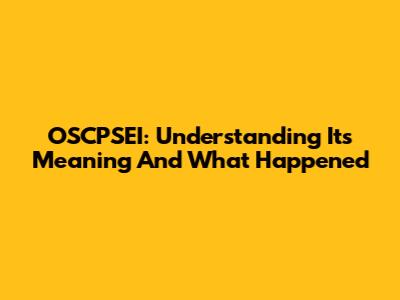OSCPSEI: Understanding Its Meaning And What Happened